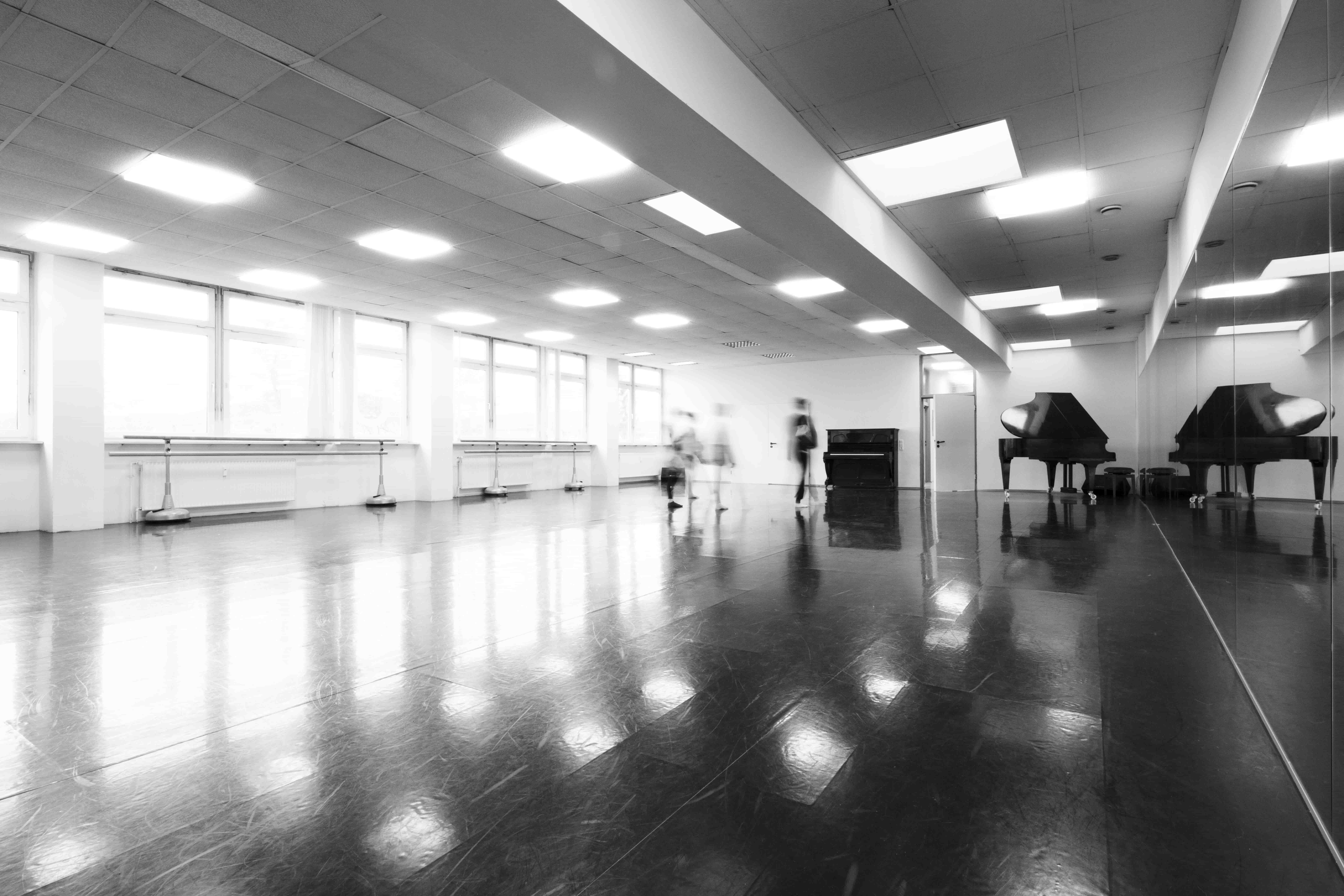 Unsere hellen Ballettsäle in der Erlangerstraße 46-48 sind mit professionellen Tanzböden und einem gelenkschützenden Schwingboden-Unterbau, professionellen und kippsicheren Ballettstangen und Sicherheitsspiegeln ausgestattet.